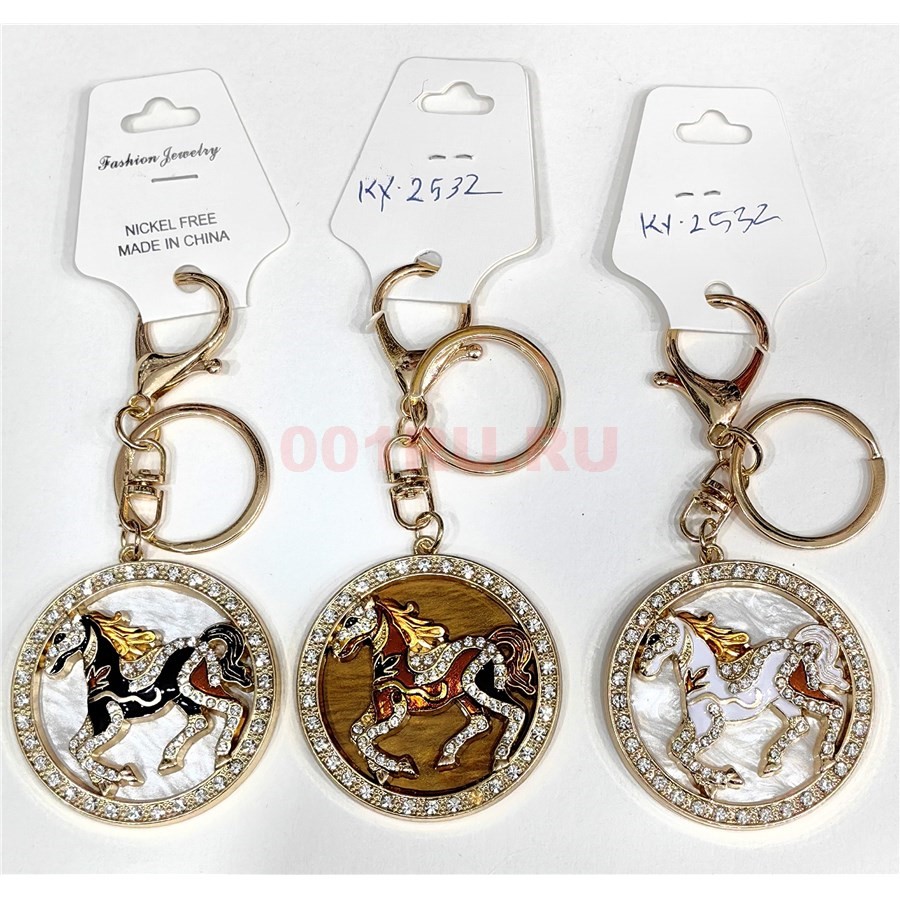 Брелок со стразами (KY-2532) лошадка круглый 12 шт/упаковка
