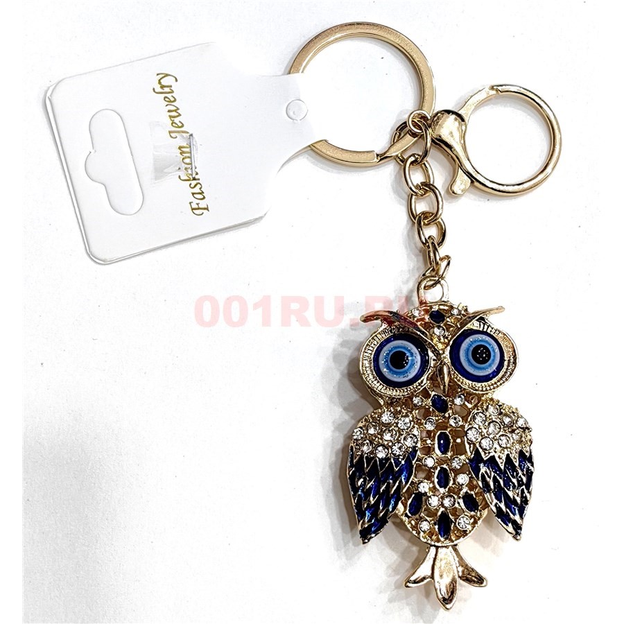 Брелок со стразами (KY-4718) сова сглаз цвет синий 12 шт/упаковка