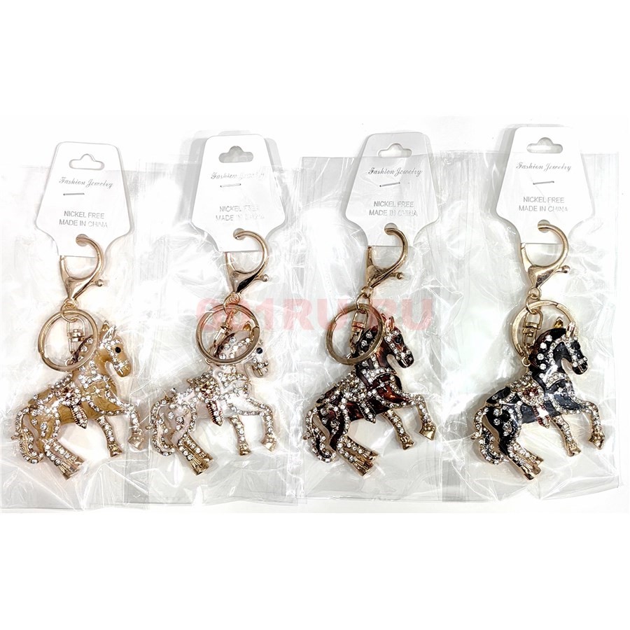 Брелок со стразами Лошадь (B-4) металлическая 12 шт/упаковка