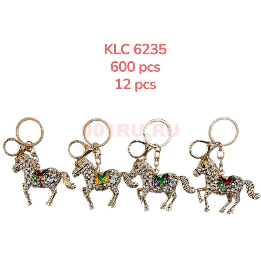 Брелок со стразами Лошадки (KLC-6235) с карабином 12 шт/упаковка