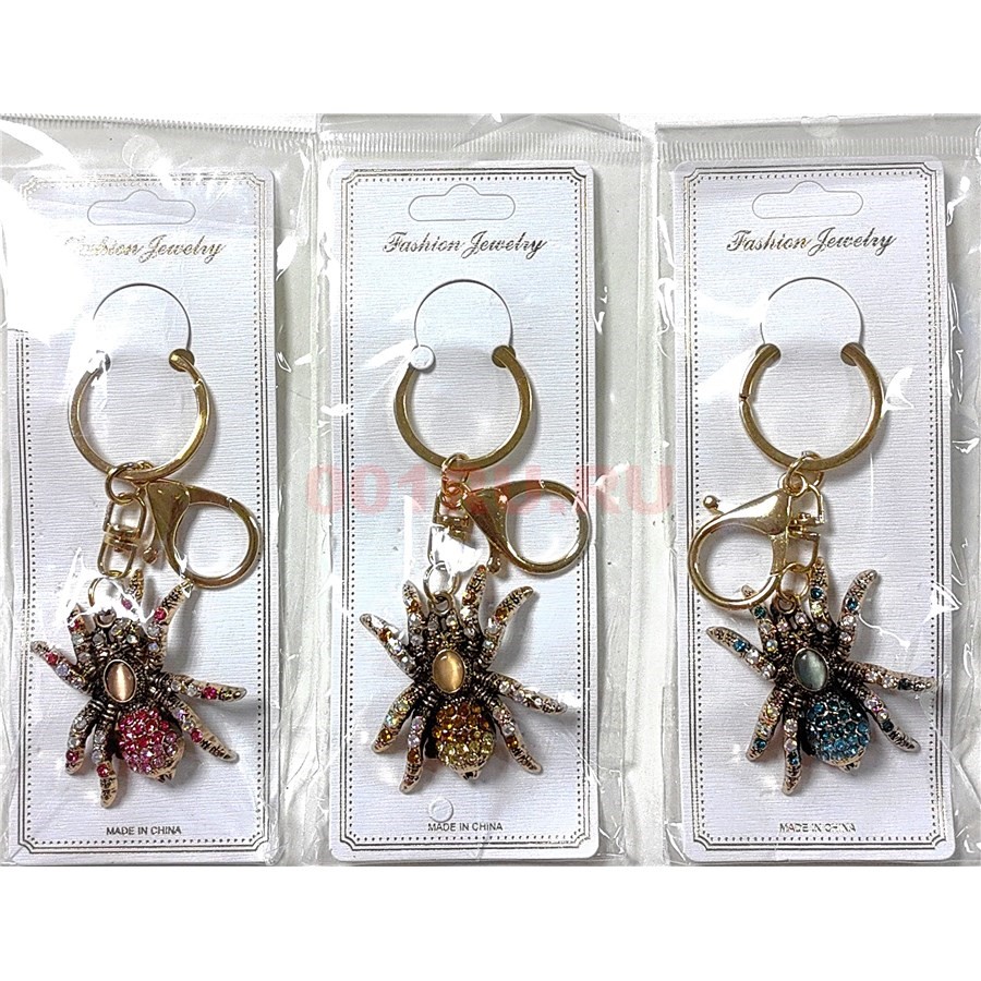 Брелок со стразами «паук» с карабином 12 шт/упаковка