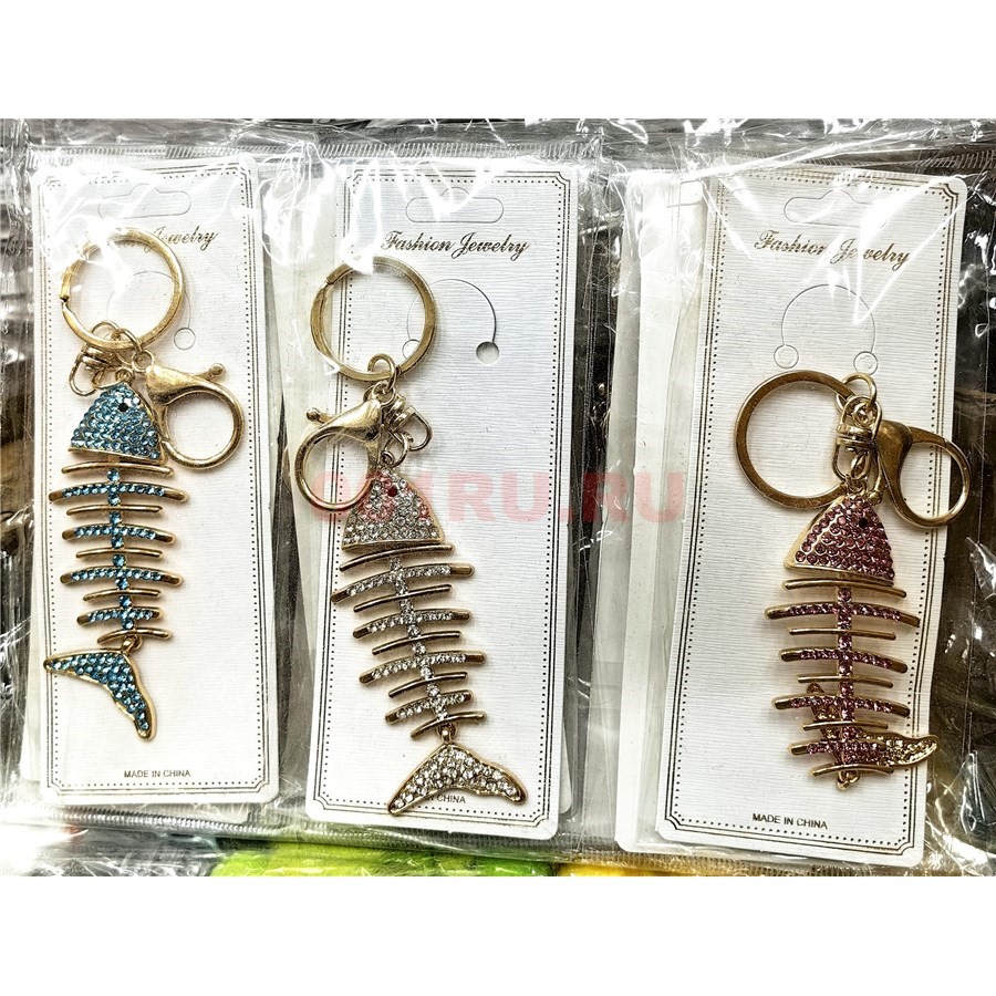 Брелок со стразами «скелет рыбы» с карабином 12 шт/упаковка