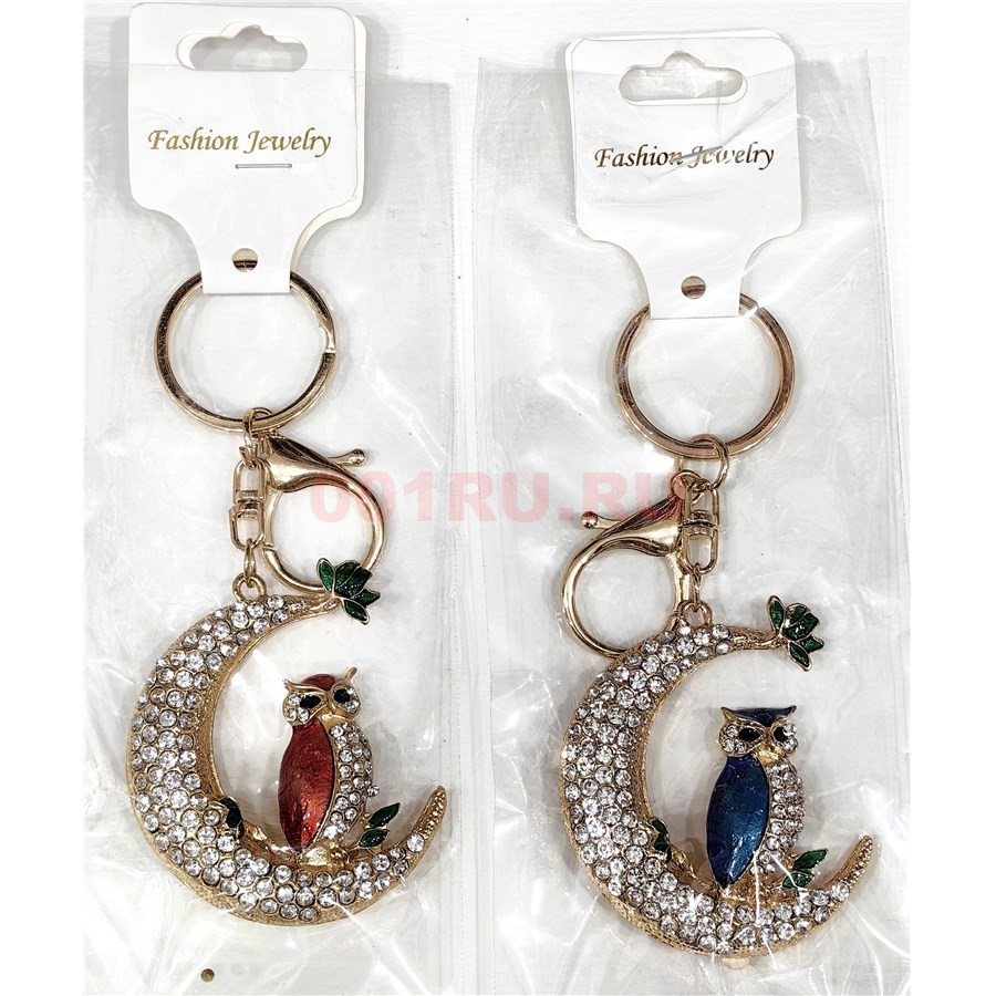 Брелок Сова на Луне со стразами 12 шт/упаковка (B-64)