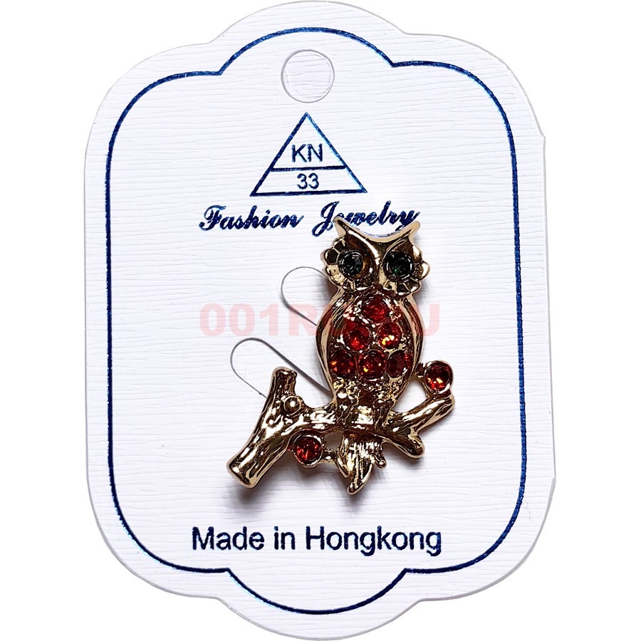 Брошь (B-116) металлическая Сова со стразами 12 шт/упаковка