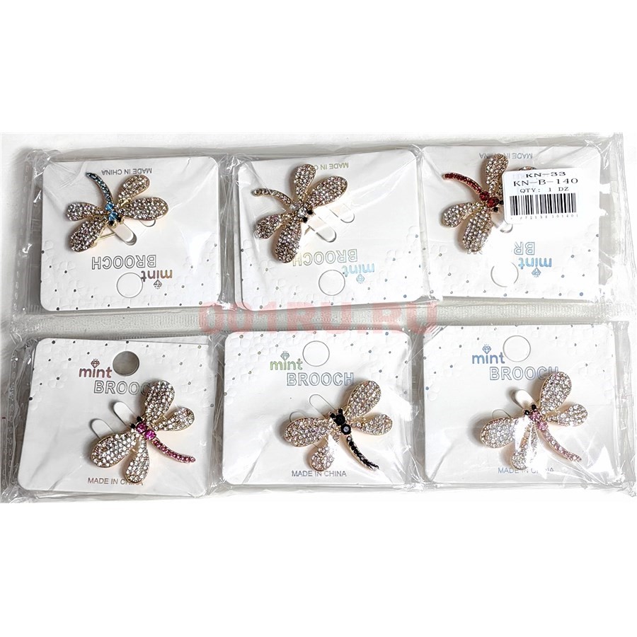 Брошь (B-140) металлическая Стрекоза со стразами 12 шт/упаковка