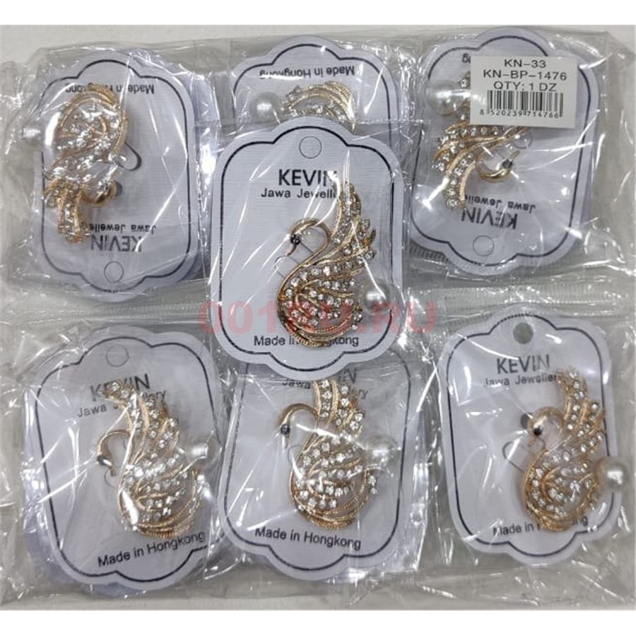 Брошь (BP-1476) металлическая Лебедь со стразами 12 шт/упаковка