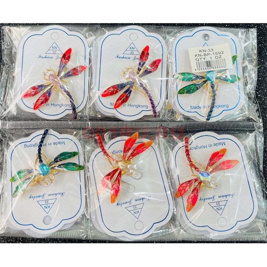 Брошь (BP-1592) металлическая Стрекоза с бусиной 12 шт/упаковка