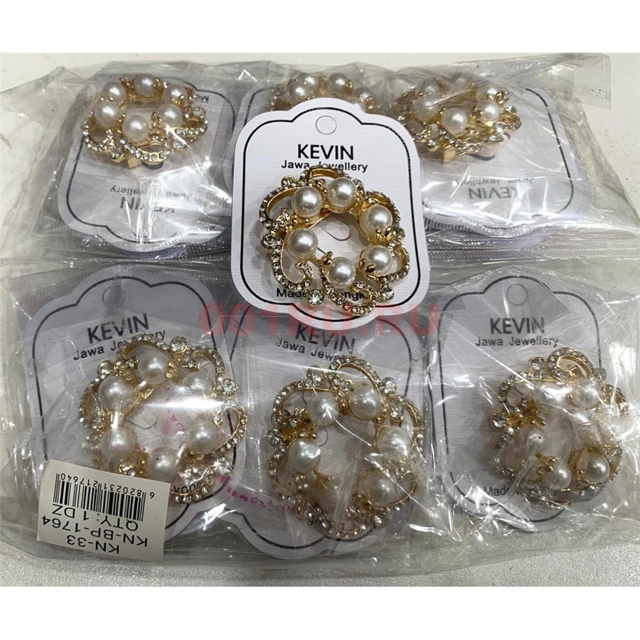 Брошь (BP-1764) Диадема с жемчугом металлическая со стразами 12 шт/упаковка