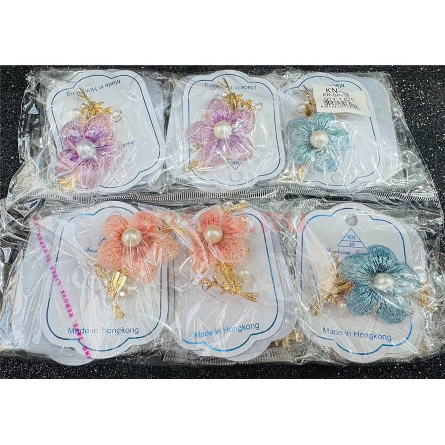 Брошь (BP-1770) металлическая Цветок со стразами 12 шт/упаковка