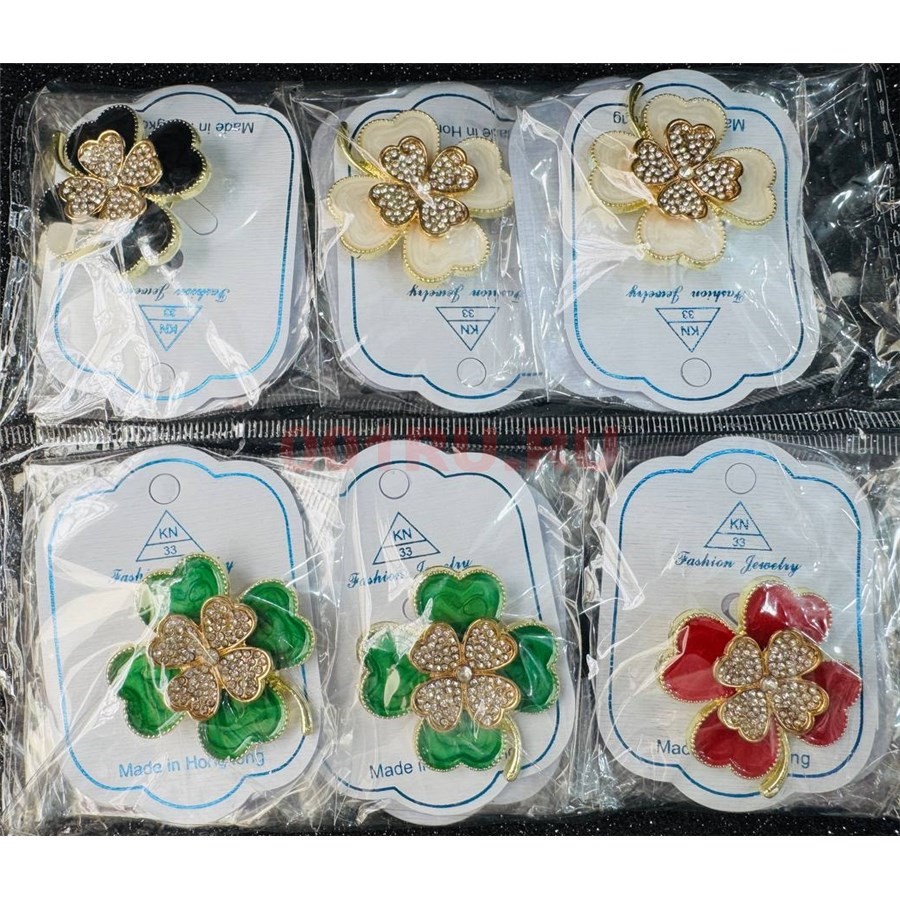 Брошь Четырехлистник со стразами (BP-1071) металлическая 12 шт/упаковка