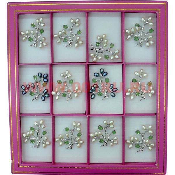 Брошь из речного жемчуга (стразы, нефрит), цена за 12 штук