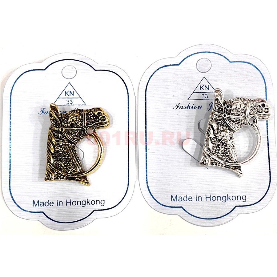 Брошь металлическая (BP-5037) Лошадь голова 2 цвета символ 2026 года 12 шт/упаковка