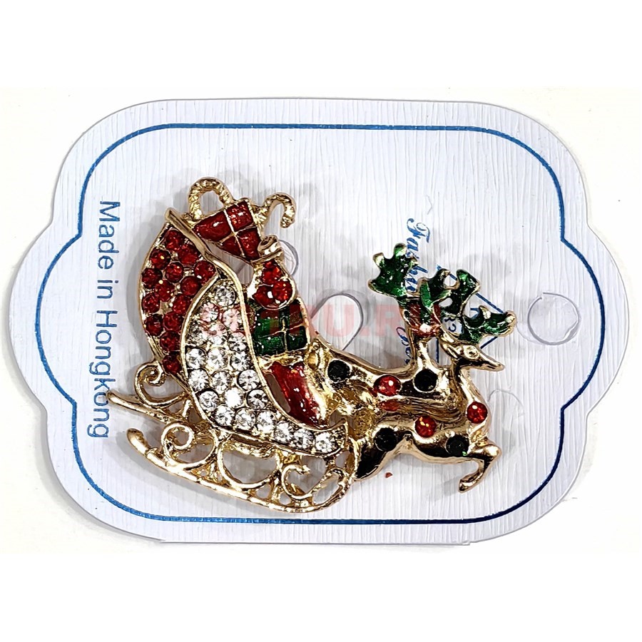 Брошь металлическая (KN-B-14) Олени с санями символ 2026 года 12 шт/упаковка