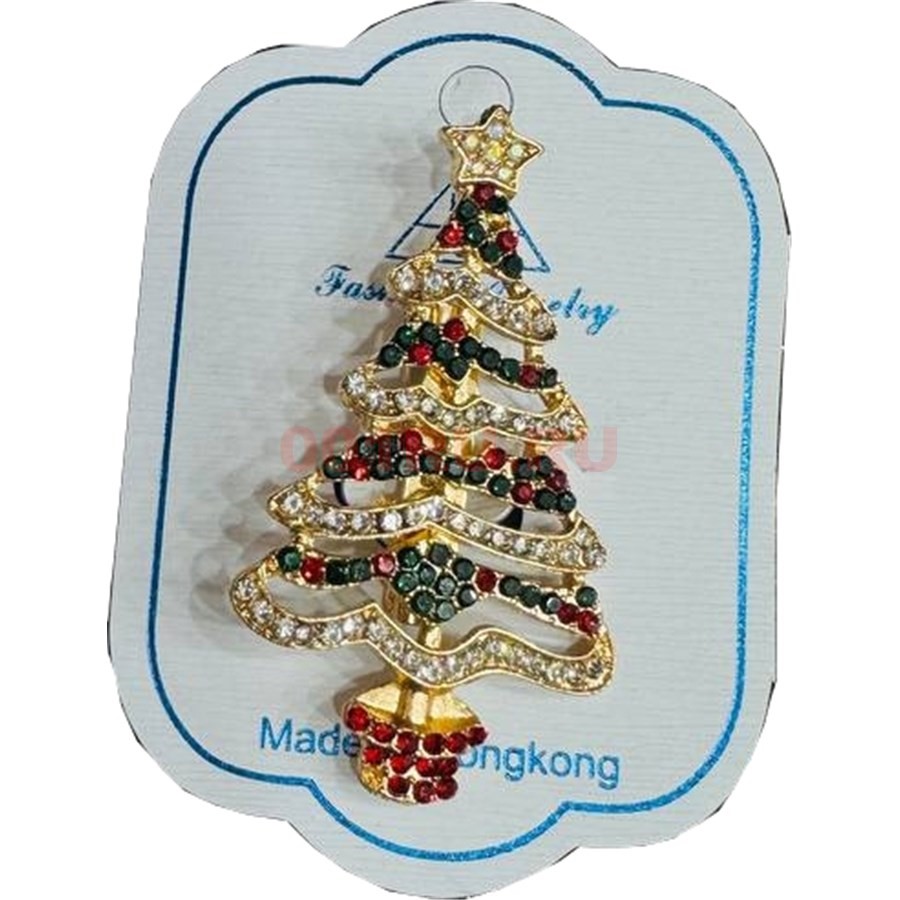 Брошь металлическая (N-B-17) новогодняя елка со стразами 12 шт/упаковка