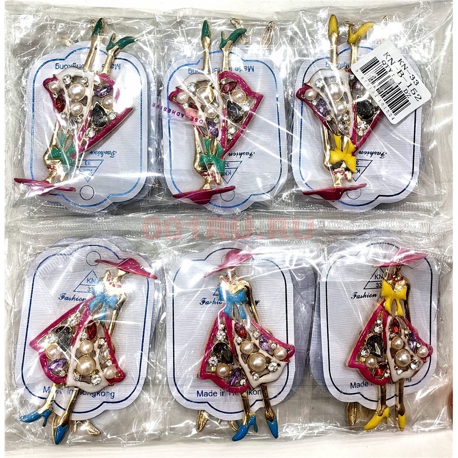 Брошь со стразами (B-152) металлическая Девушка 12 шт/упаковка
