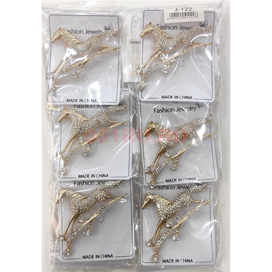 Брошь со стразами (J-122) лошадка бегущая 12 шт/упаковка