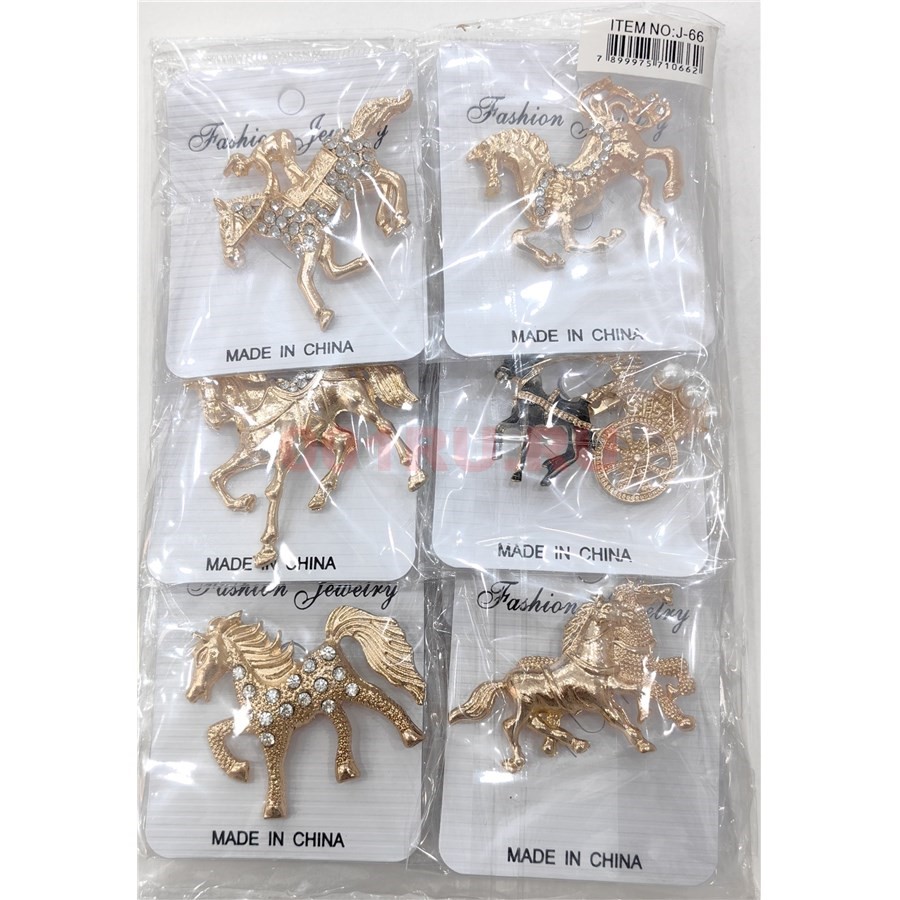 Брошь со стразами (J-66) лошадь в ассортименте 12 шт/упаковка