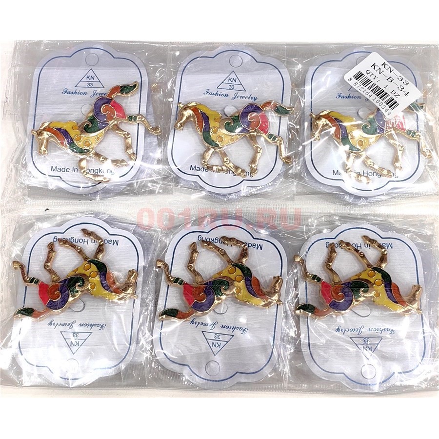 Брошь со стразами Лошадь (KN-B-34) металлическая 12 шт/упаковка