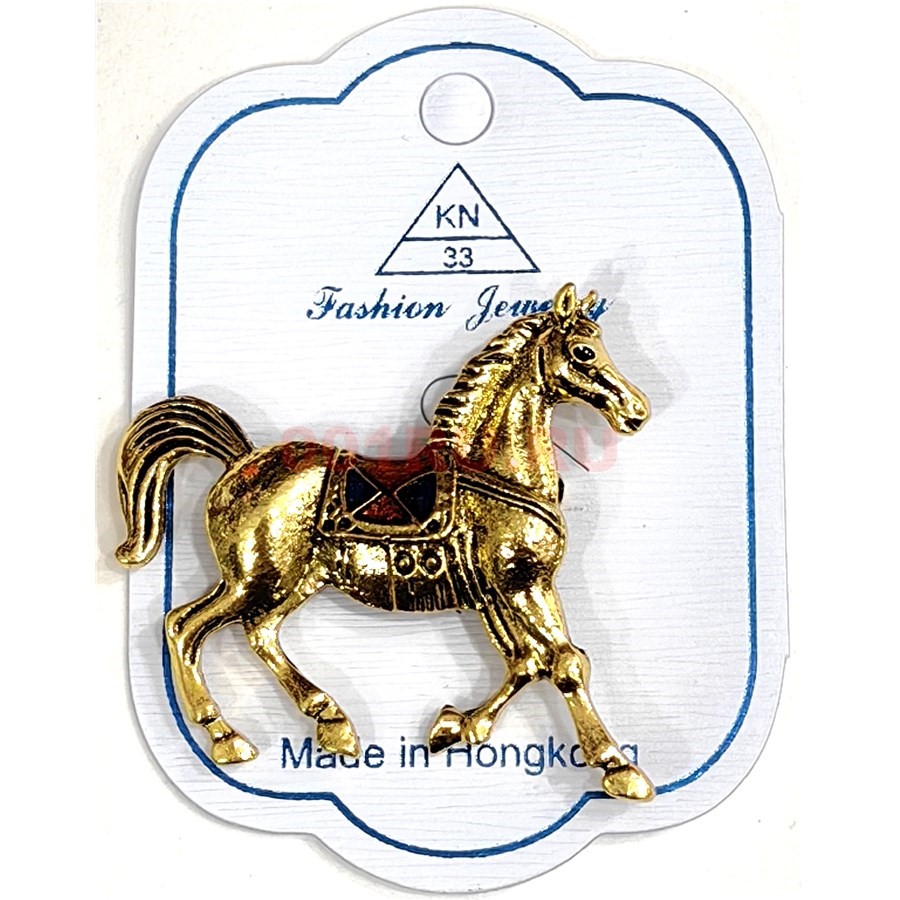 Брошь со стразами Лошадь (KN-B-37) металлическая 12 шт/упаковка