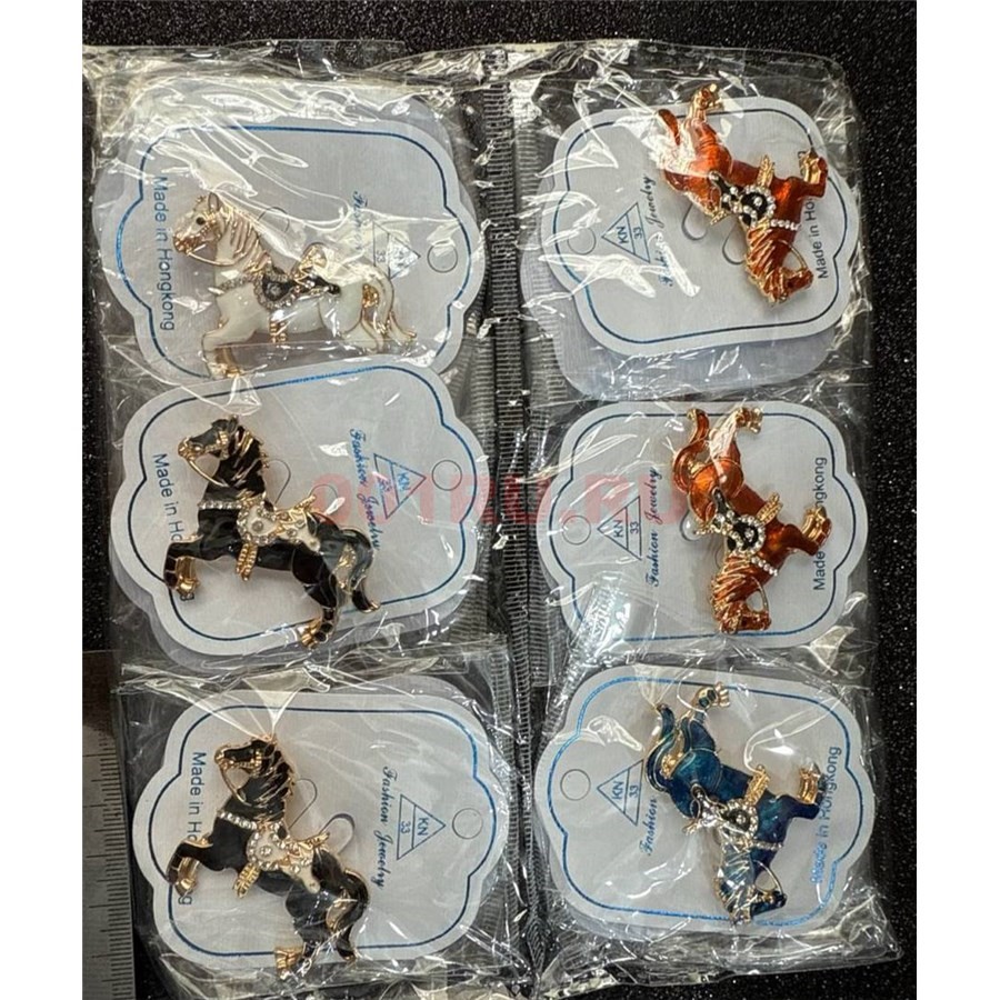 Брошь со стразами Лошадь с упряжью (KN-B-55) металлическая 12 шт/упаковка