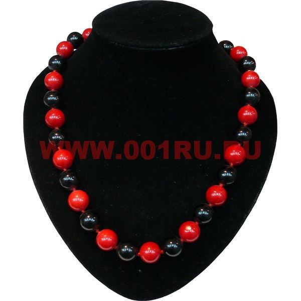 Бусы из коралла и черного агата 14 мм круглые 60 см