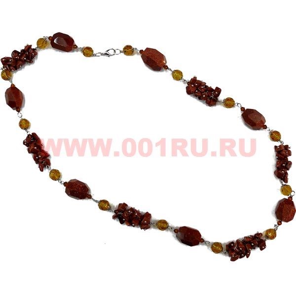 Бусы из коричневого авантюрина 70 см оптом (россыпь+камень)