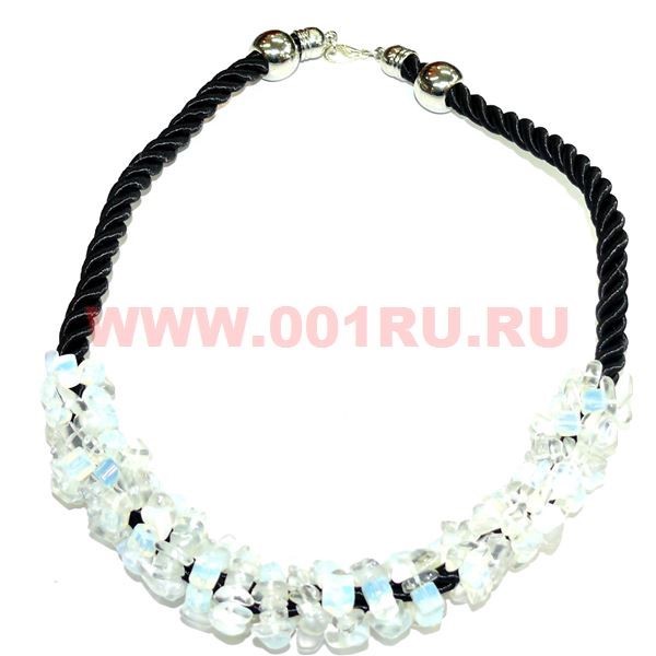 Бусы из натур.камня на кожаном ремешке 45 см лунный камень