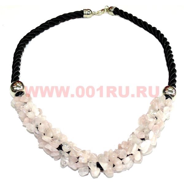 Бусы из натур.камня на кожаном ремешке 45 см розовый кварц