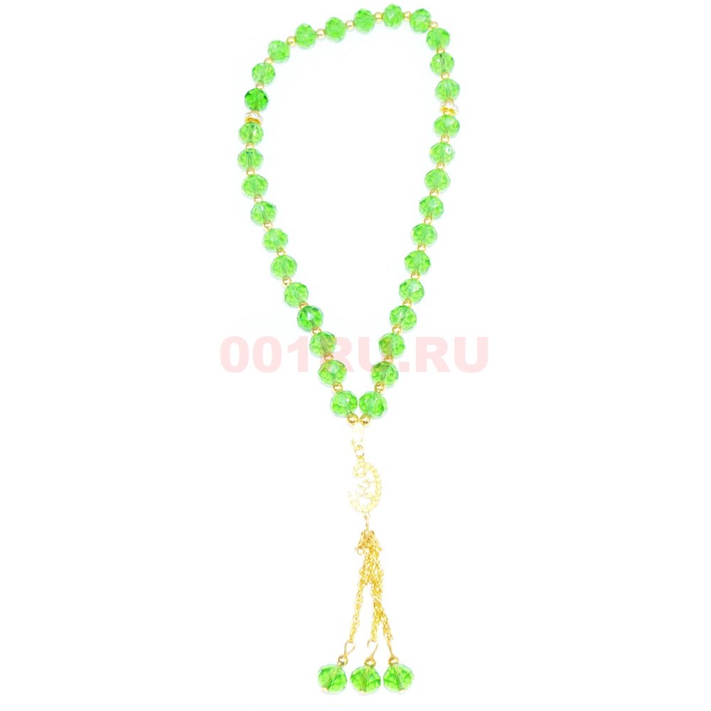 Четки мусульманские 33 бусины граненые (CK-1529) из стекла светло-зеленого 23 см