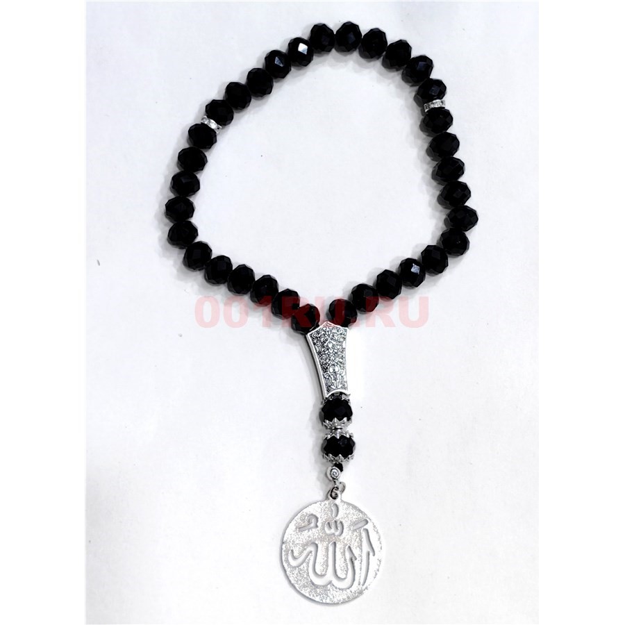 Четки мусульманские черные 33 бусины (CK-B32) с жетоном Аллах 12 шт/упаковка