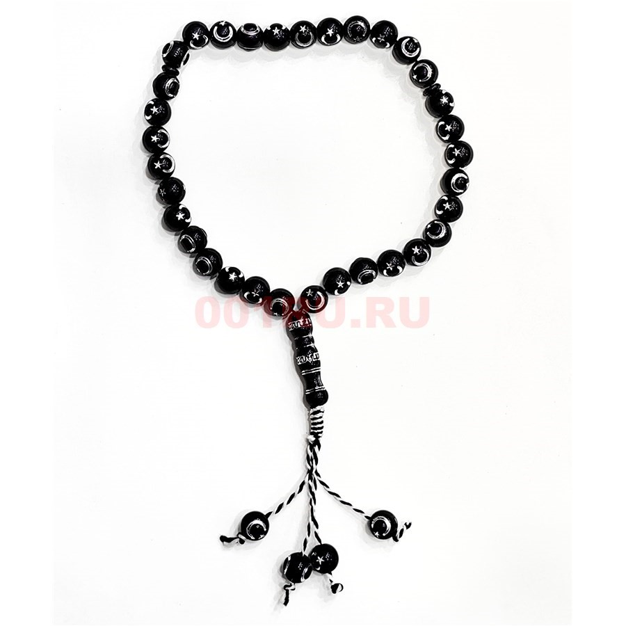 Четки мусульманские черные 33 бусины Луна и Звезда 12 шт/упаковка