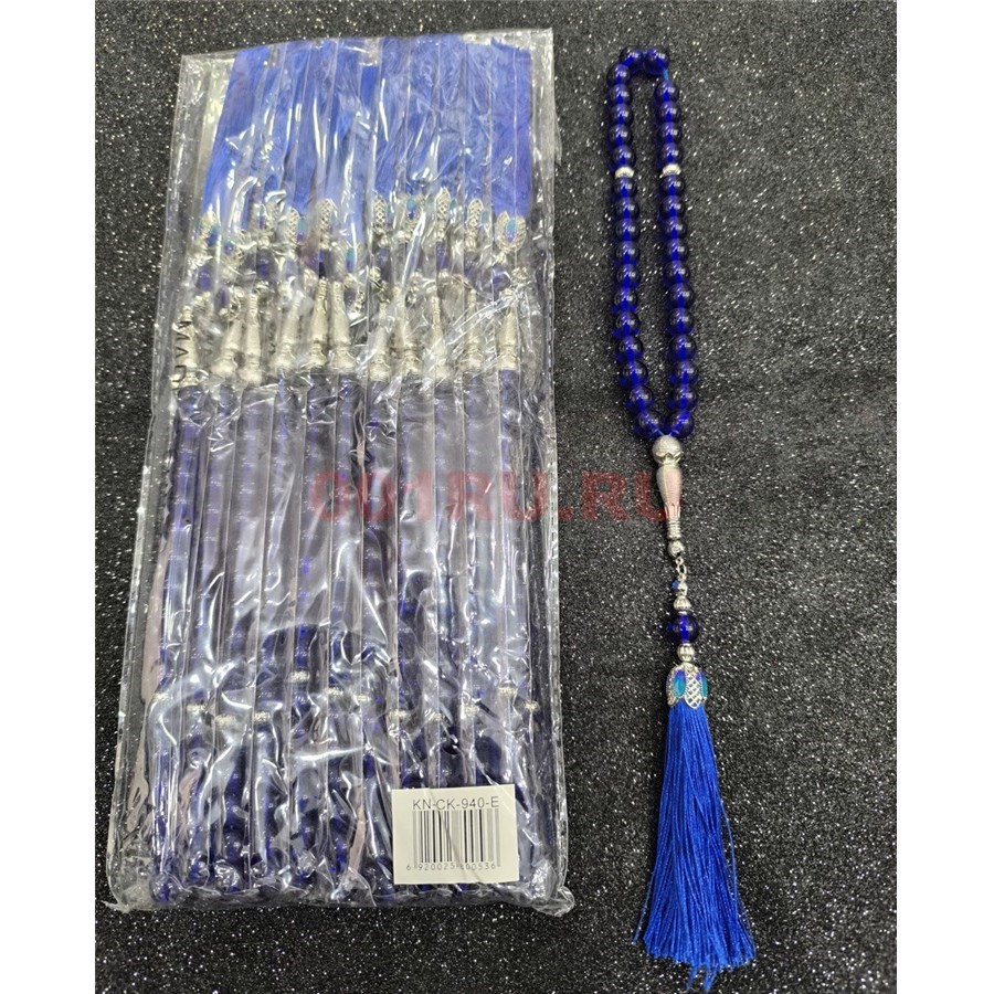 Четки стеклянные 33 бусины (CK-940E) цвет синий 8 мм 12 шт/упаковка