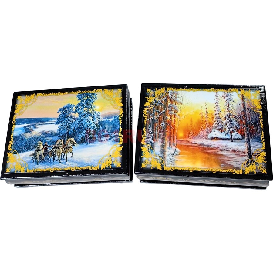 Деревянная подарочная шкатулка «Зимняя тема» 8х10 см