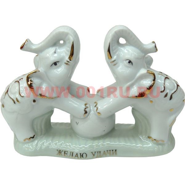 Два слоника на шаре из фарфора (11 см высота)