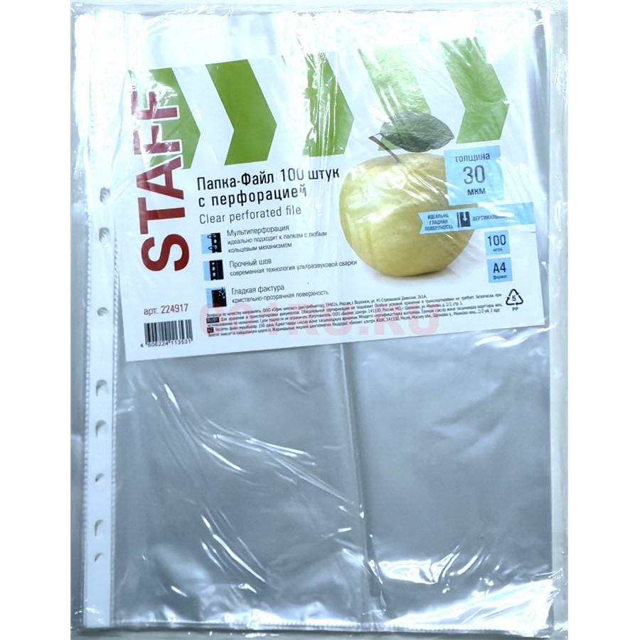 Файлики (вкладыши перфорированные) 30 мкм 100 шт для бумаг А4