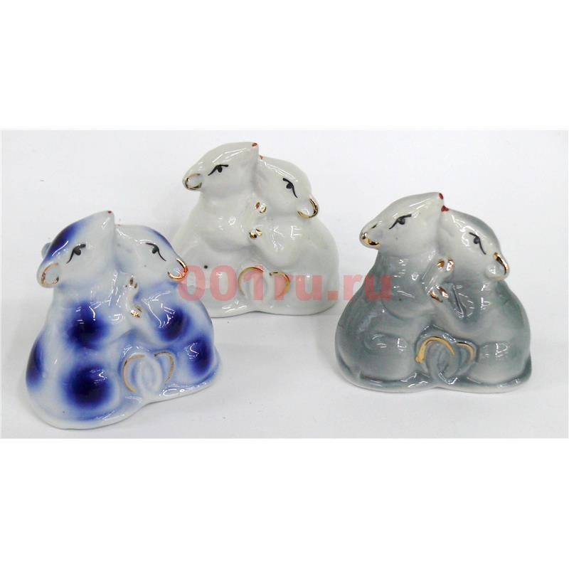 Фарфоровая статуэтка крысы обнимаются (KL-1508) символ 2020 года