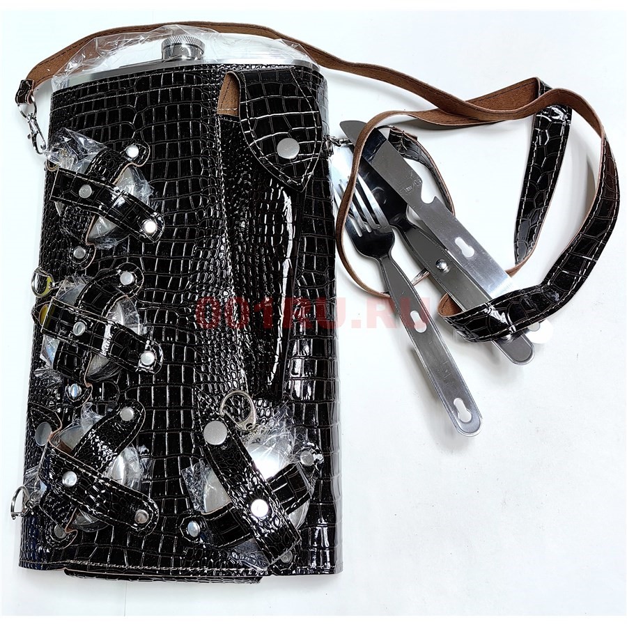 Производство: Китай. Материал: Фляга из нержавеющей стали, раскладные стаканчики 4 шт и походный набор нож-вилка-ложка, футляр из кожзама.