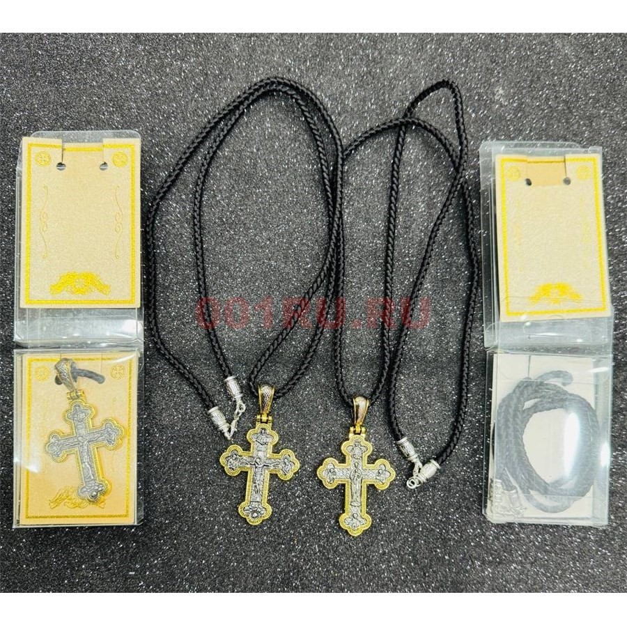 Гайтан толстый черный (B-113) с крестом в коробочке 12 шт/упаковка