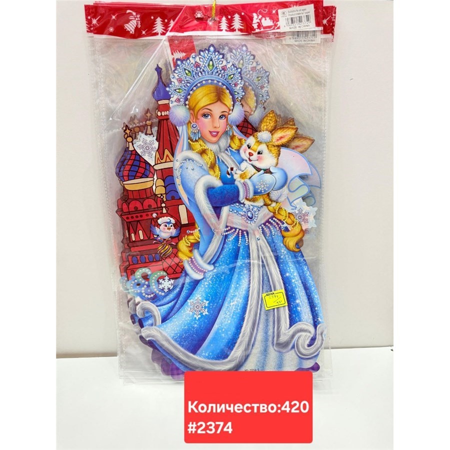 Картинка новогодняя (2374) Снегурочка 10 шт/упаковка