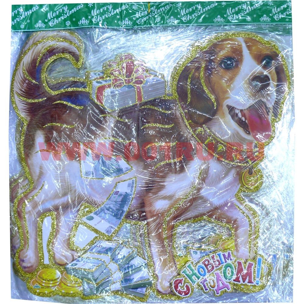 Картинка с собакой (SD-33) С Новым Годом 10 шт/уп