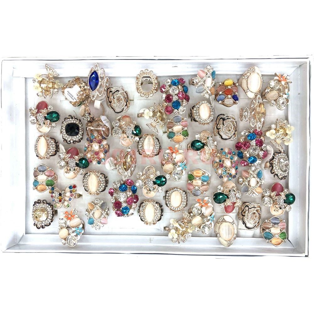 Кольца (M42) в виде цветов со стразами 50 шт/уп