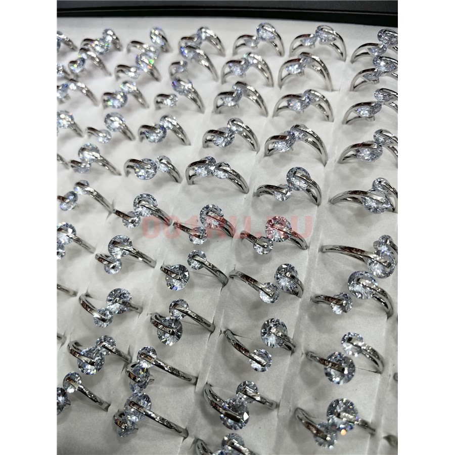 Кольцо металлическое (KL-2304) с 2 фианитами цвет серебро 100 шт/упаковка