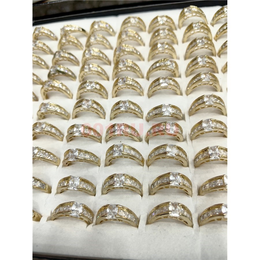 Кольцо металлическое (KL-2319) с фианитами цвет золото 100 шт/упаковка