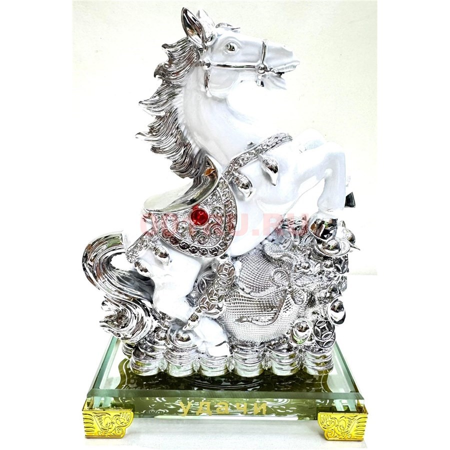 Конь из полистоуна 18 см высота цвет белый (PS-26W) на стеклянной подставке
