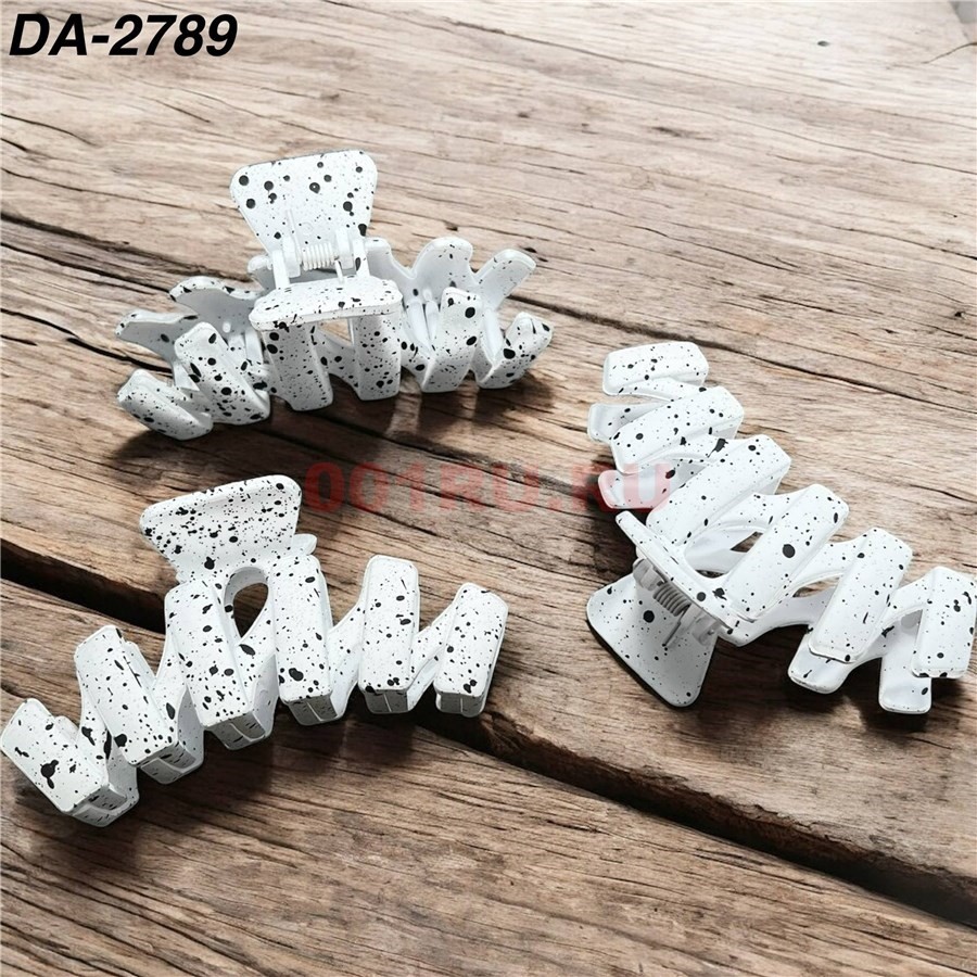 Краб для волос белый в черную крапинку (DA-2789) пластмассовый 12 шт/упаковка