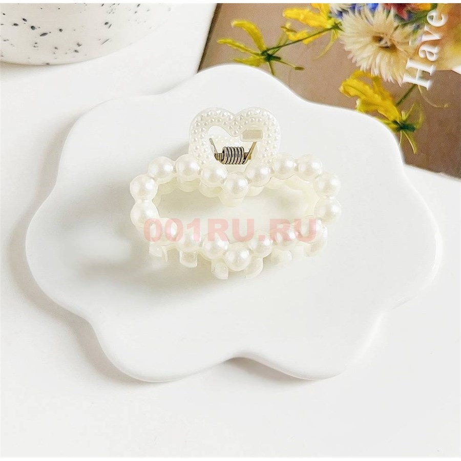 Крабики для волос 4 см под жемчуг (форма сердце пустое) пластмассовые 120 шт/упаковка