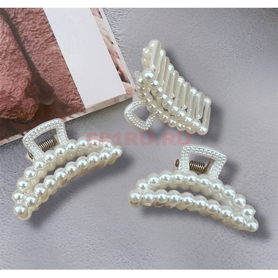 Крабики для волос 4 см под жемчуг (форма узкий полумесяц) пластмассовые 120 шт/упаковка