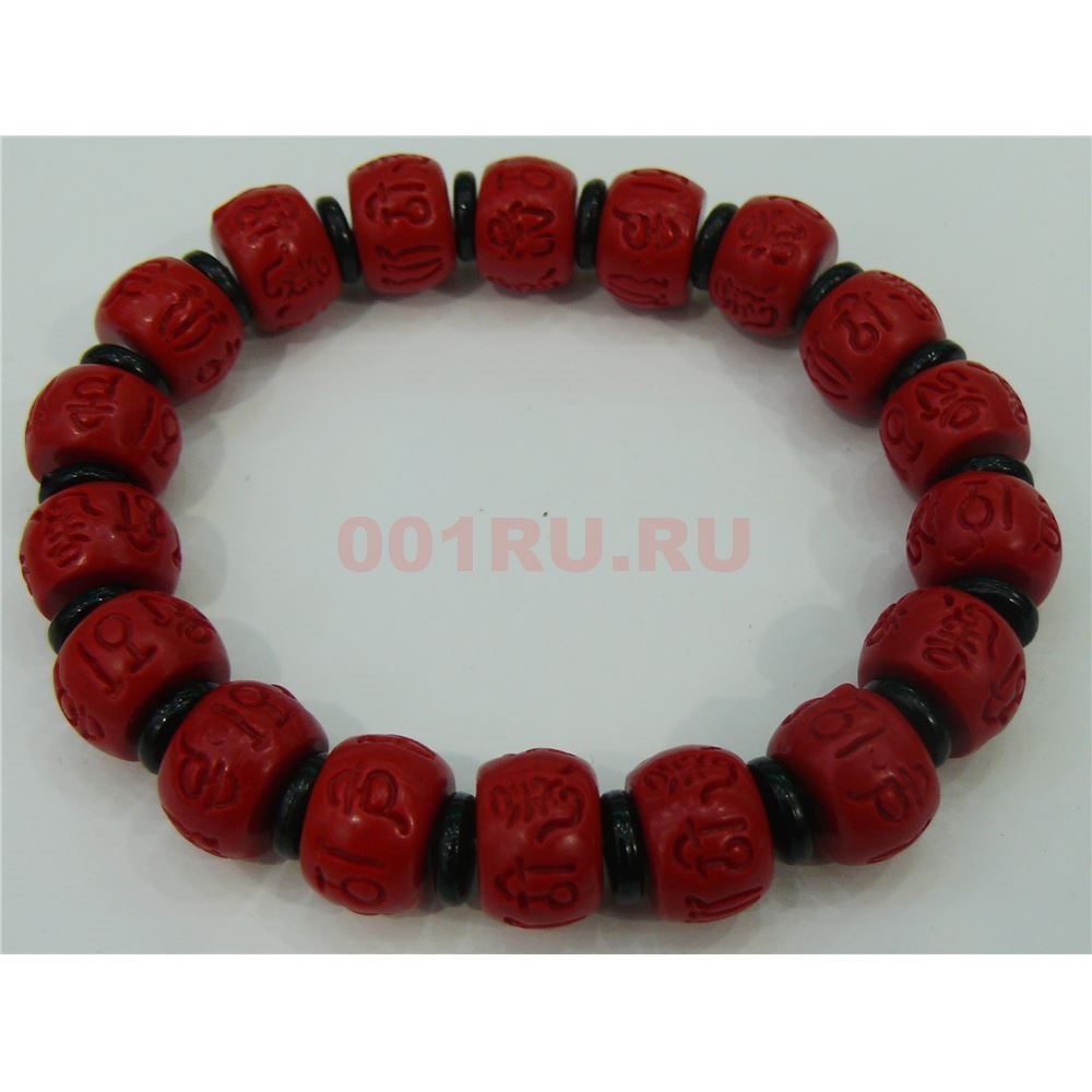Красно-черный браслет 14 мм с мантрами