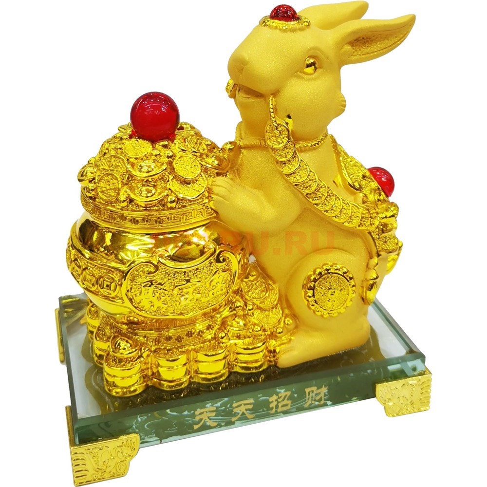 Кролик 14 см с Чашей Богатства (NS-550-2) на стеклянной подставке