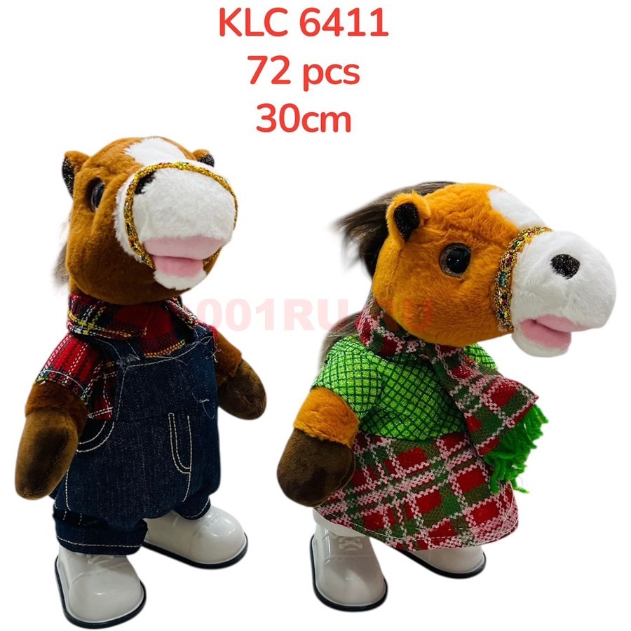 Лошадь музыкальная (KLC-6411) в комбинезоне и платье 30 см высота